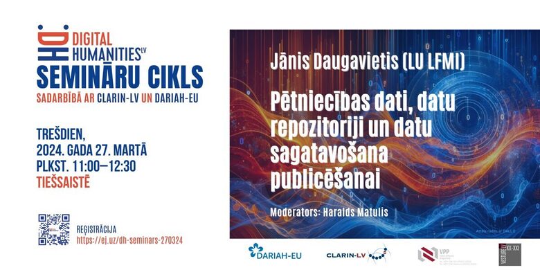 The DIGITALHUMANITIES.LV Workshop Series creates a shared space for researchers, students, cultural heritage professionals, and interested communities to meet, learn, and exchange experiences around digital humanities practices. Organised in collaboration with the Latvian national nodes of DARIAH and CLARIN, the workshops emphasize collaboration, openness, and practical experimentation, bringing together diverse perspectives on working with digital cultural heritage, data, language technologies, and digital research methods.